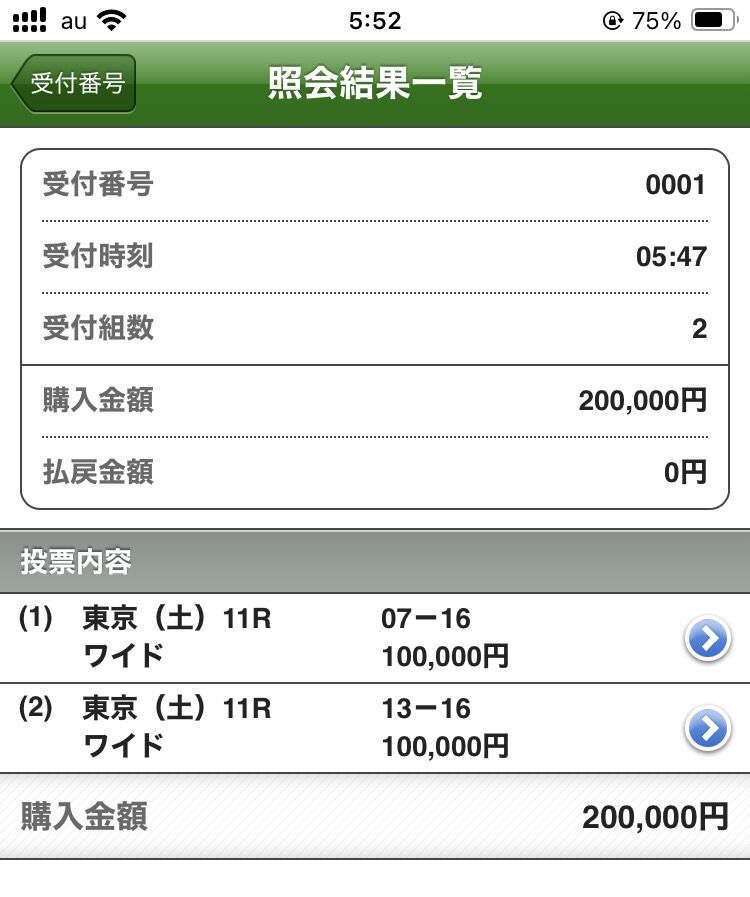 ワイド馬券の相手に2番ウイングレイテストと12番ペアポルックス!