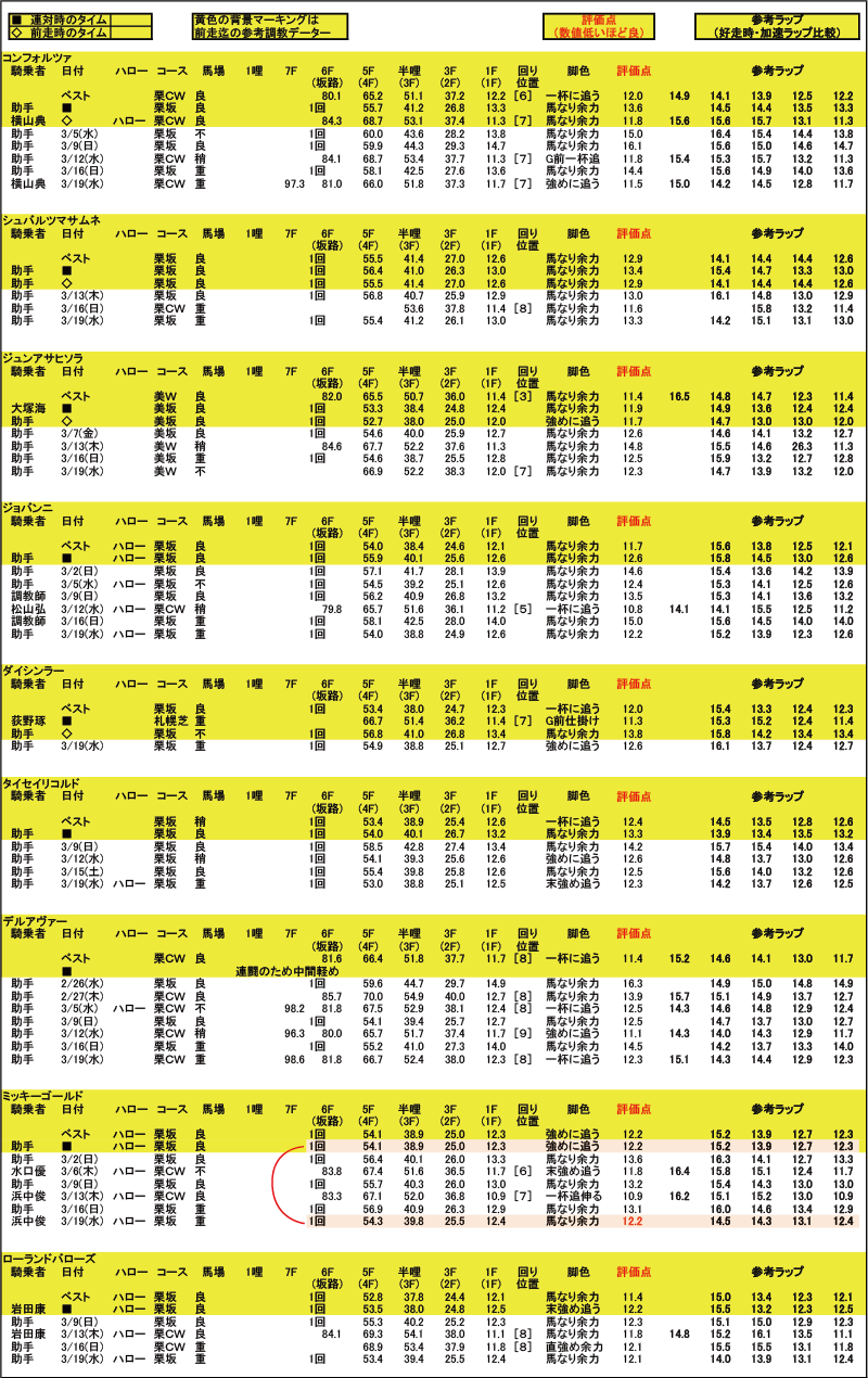 【今週水曜日迄の調教データを前走迄の調教DATAと比較】