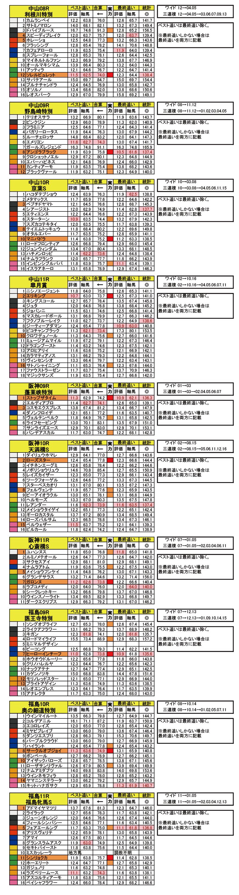 後はこのレースでのベスト調教の【合算】数値と、