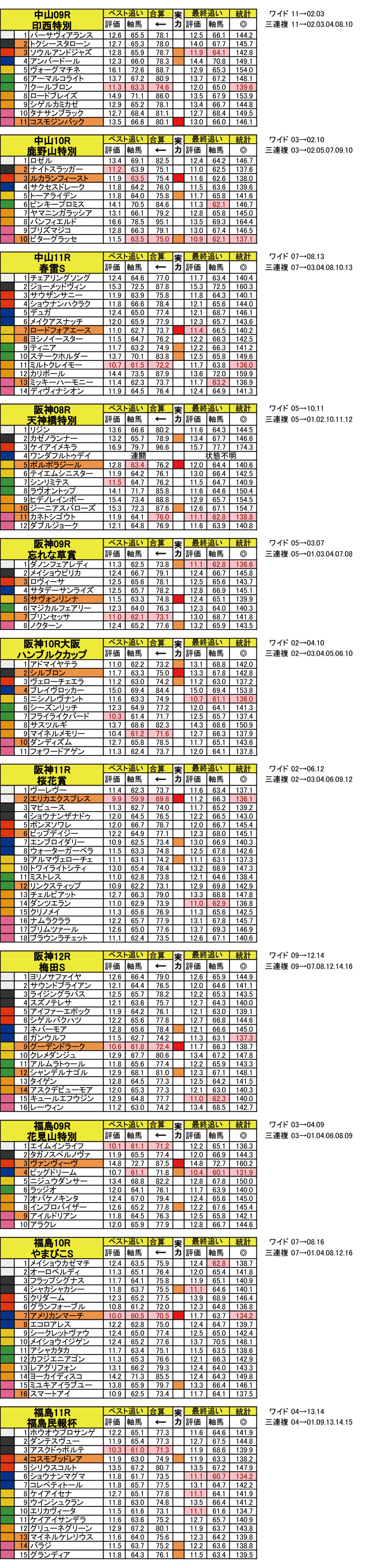 これで実力馬3頭の数値の低い馬を見比べてます。
